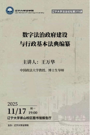 讲座主题:数字法治政府建设与行政基本法典编纂