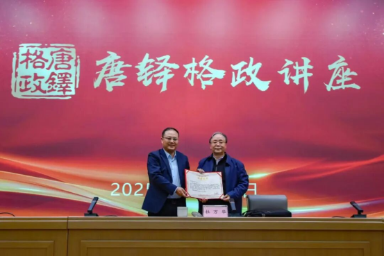 讲座结束后,闫海为杜万华颁发“唐铎格政讲座”纪念证书,辽宁大学法学院院长路军为杜万华颁发“唐铎格政讲座”纪念盘。