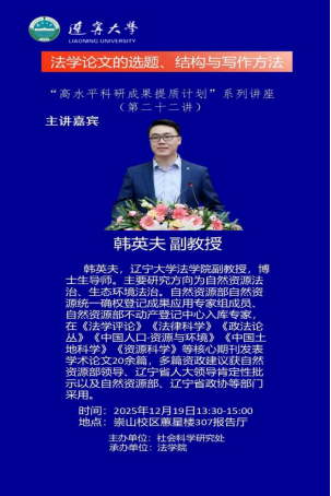 辽宁大学“高水平科研成果提质计划”系列讲座
