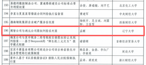 本次案例征集共吸引全国152个培养单位积极参与。经过多轮严格评审、教指委会议审议及教育部学位与研究生教育发展中心审查,最终从众多提交案例中遴选出241项优秀作品入库。我院入选的两项案例覆盖破产纠纷、股权争议等多维领域,兼具实践应用性与教学适用性,展现了教师团队在实务研究与教学创新上的深厚积淀。具体包括:
