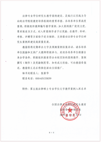 此次入选,是我院持续深化案例教学改革的又一重要成果。近年来,学院通过搭建产学研平台、鼓励教师参与实务研究,有效推动了法律硕士培养与司法实践的深度融合。案例的成功入库,不仅提升了我院在全国法学教育中的影响力,也为学生提供了高质量的学习素材,助力其夯实专业基础、提升解决实际问题的能力。