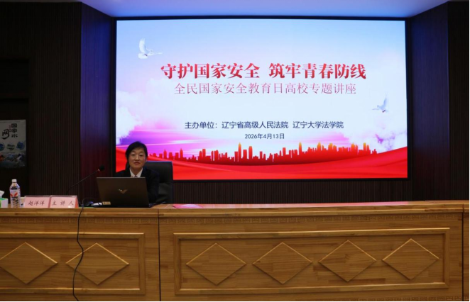 为迎接“4·15”全民国家安全教育日,切实提升高校学生国家安全意识和法治素养,筑牢国家安全防线,2026年4月13日,由辽宁省高级人民法院与辽宁大学法学院联合主办的“守护国家安全 筑牢青春防线”全民国家安全教育日高校专题讲座在辽宁大学崇山校区图书馆报告厅顺利举办。