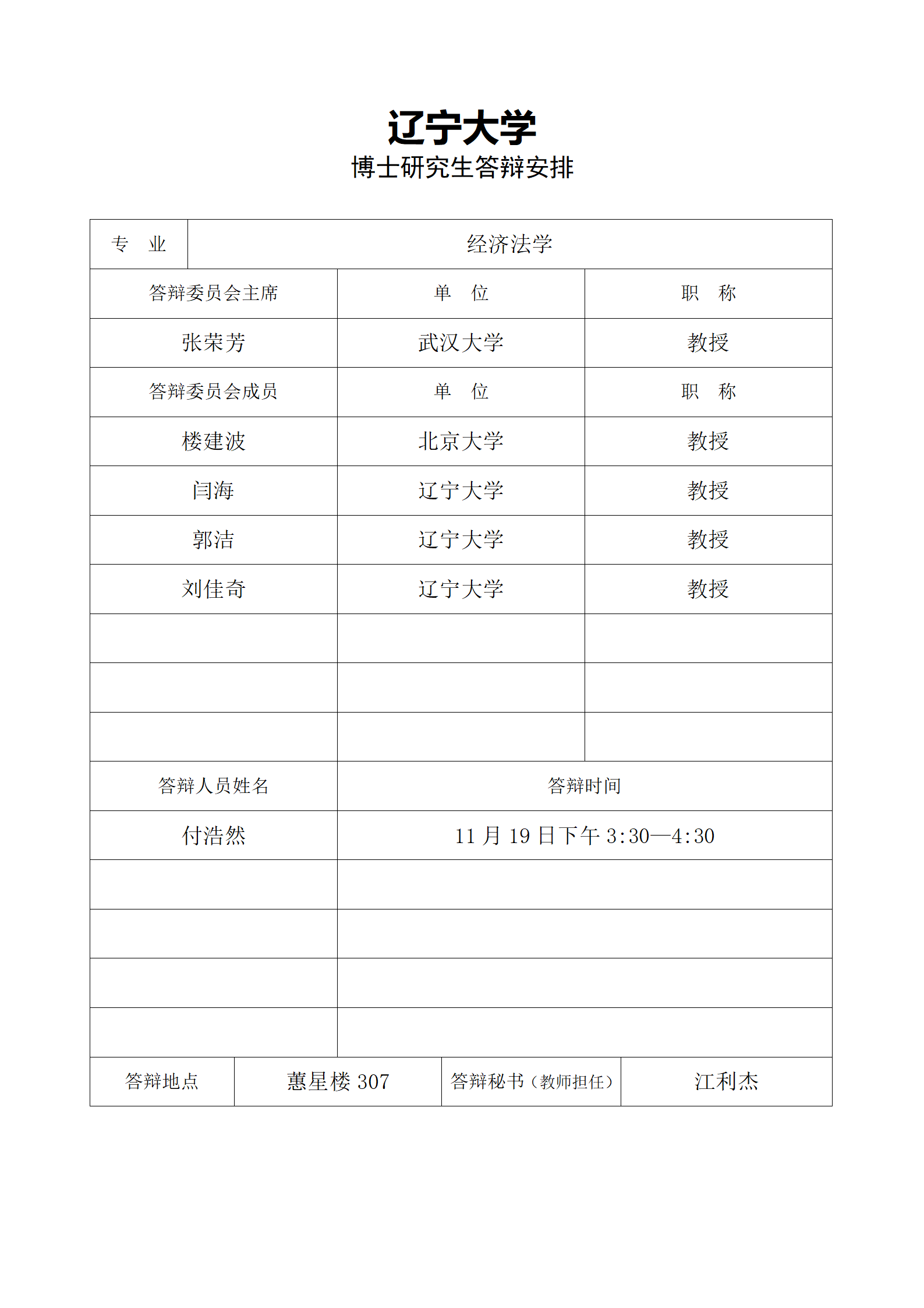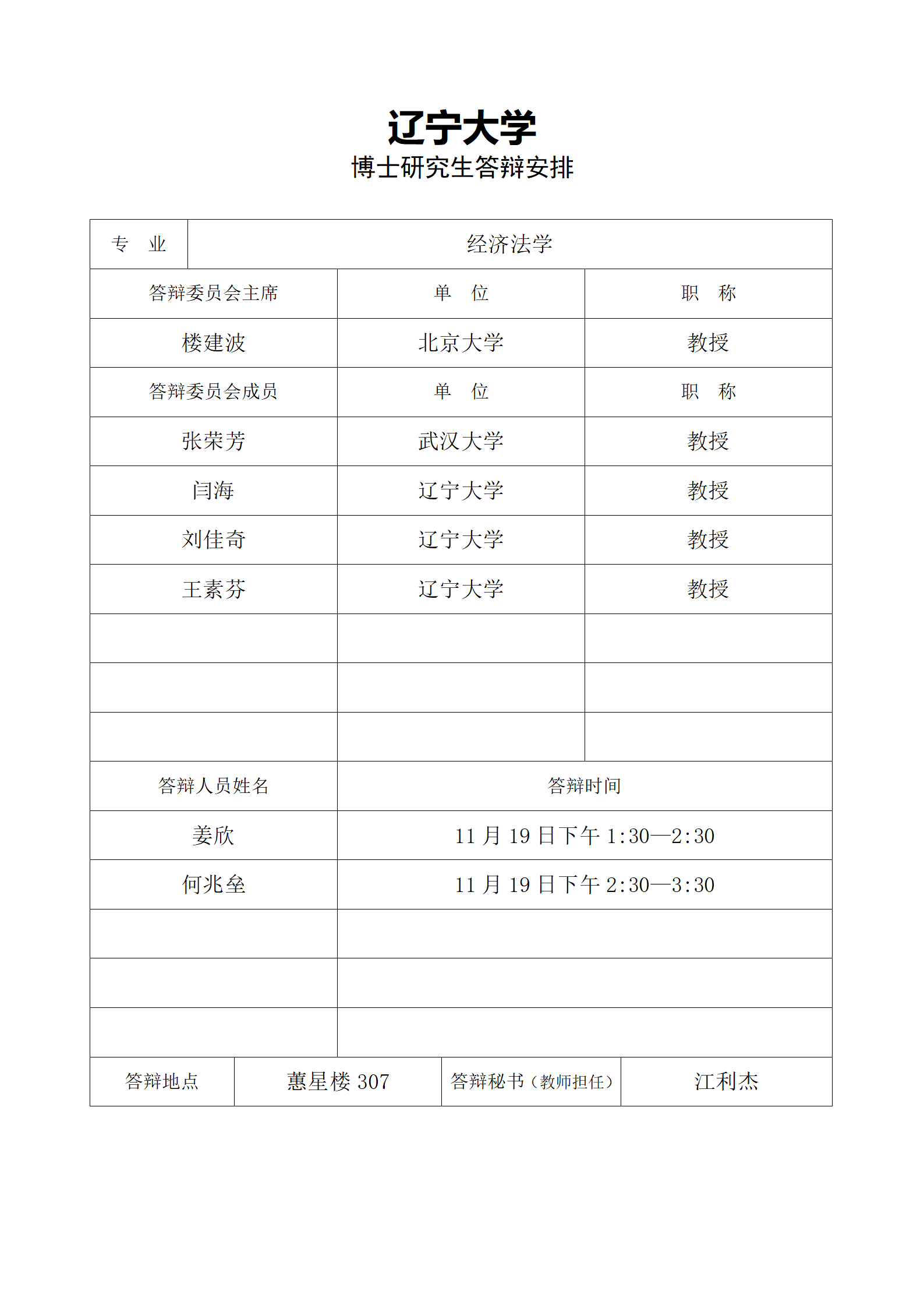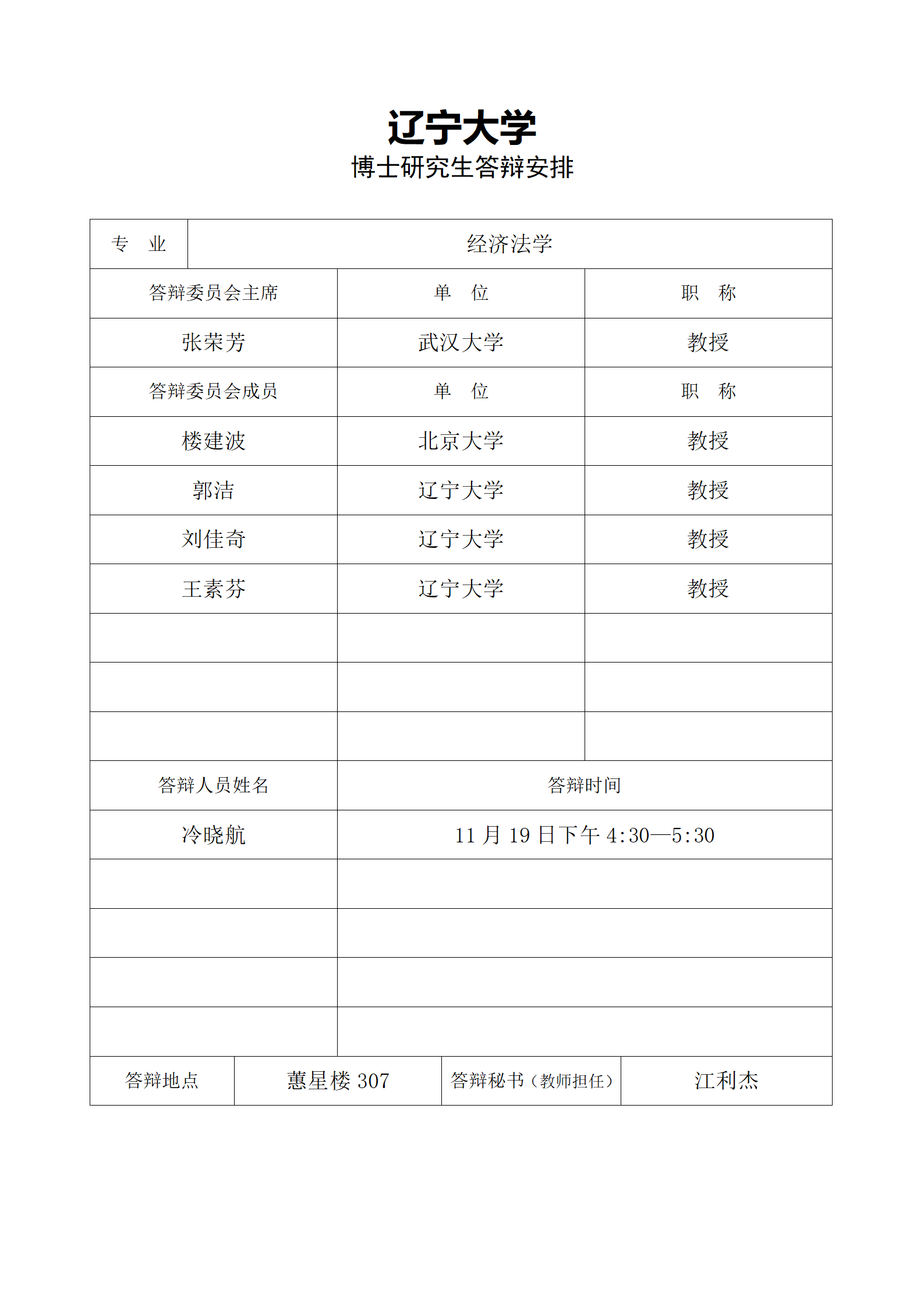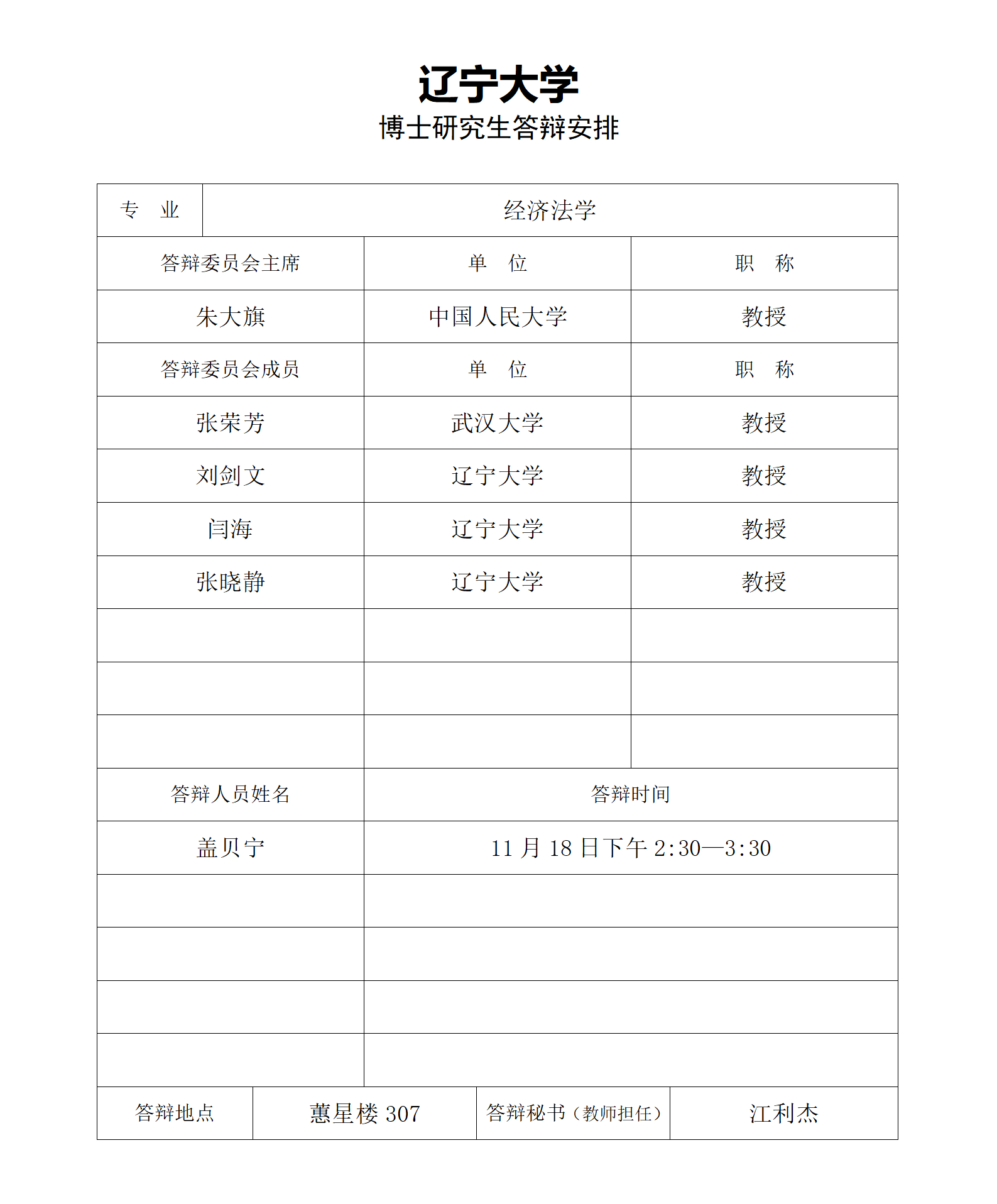 法学院2025-2026学年第一学期博士学位论文答辩公示