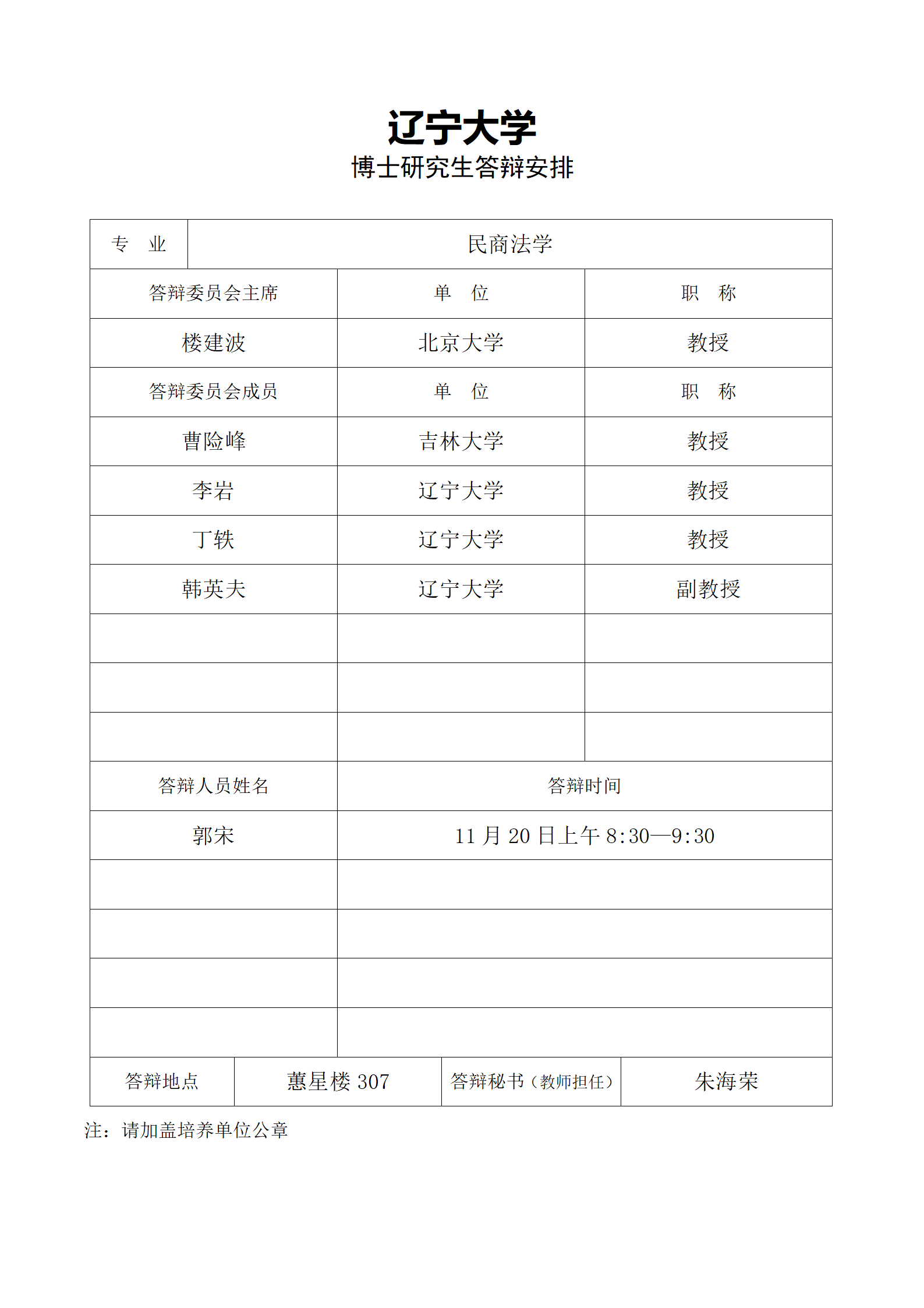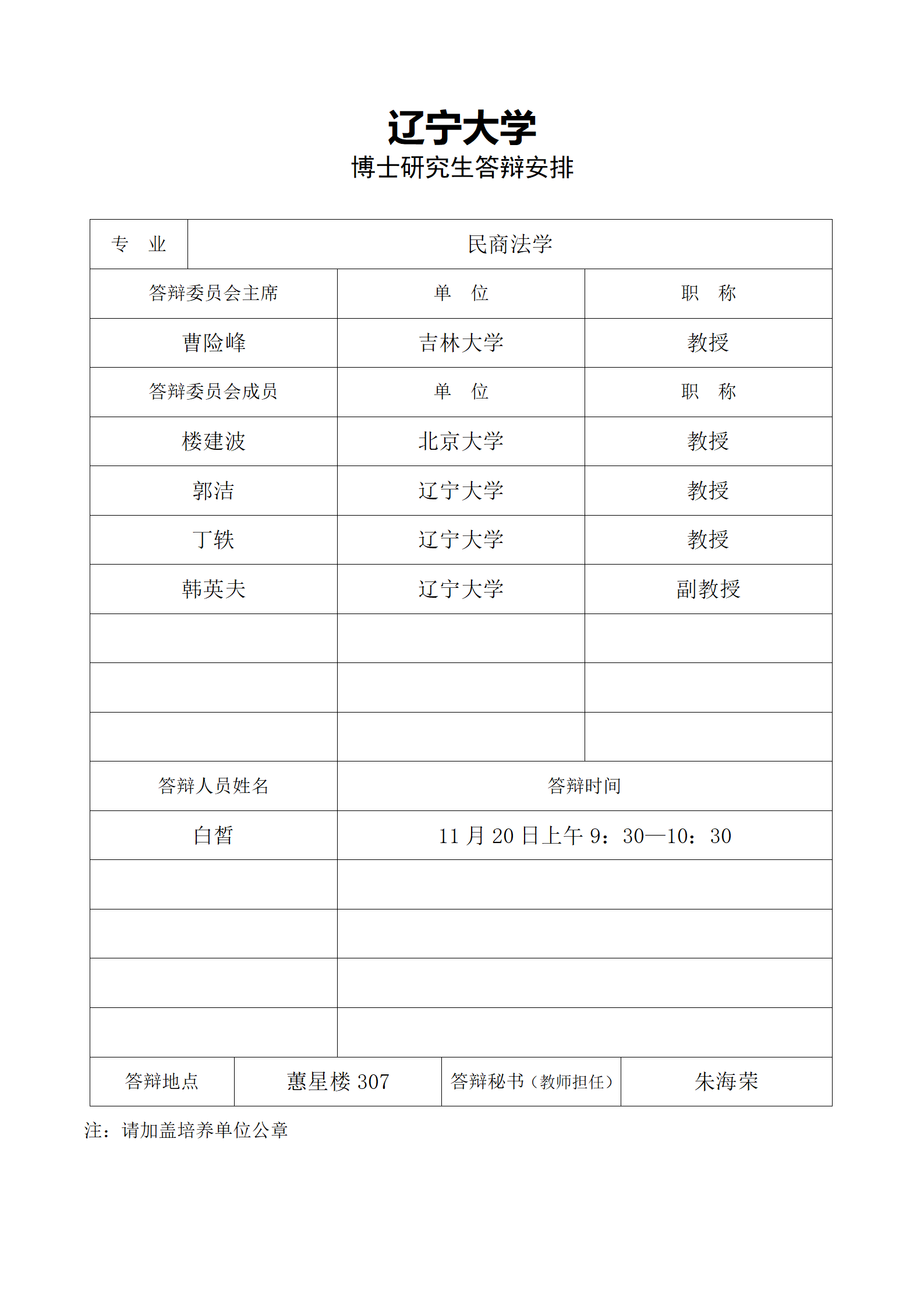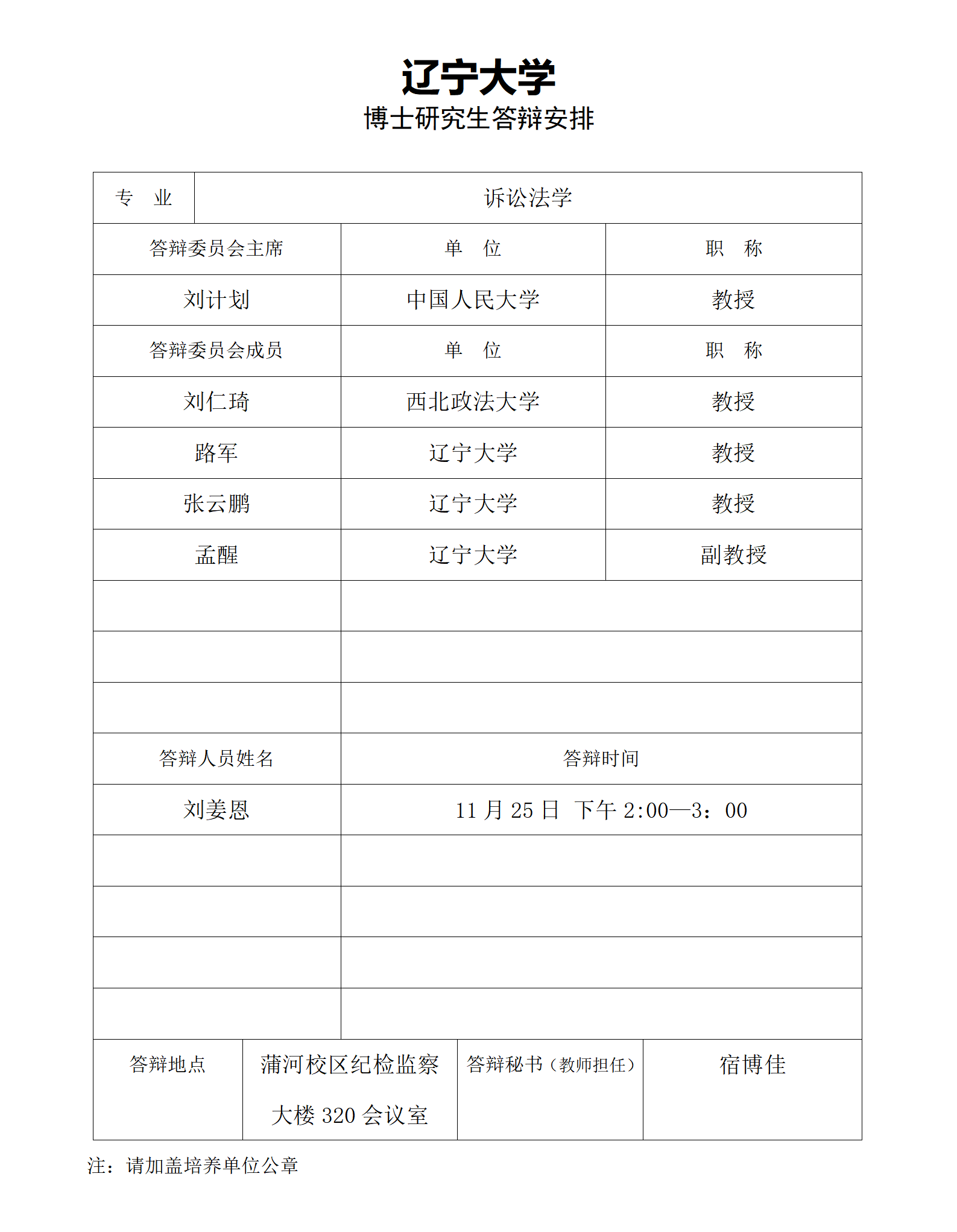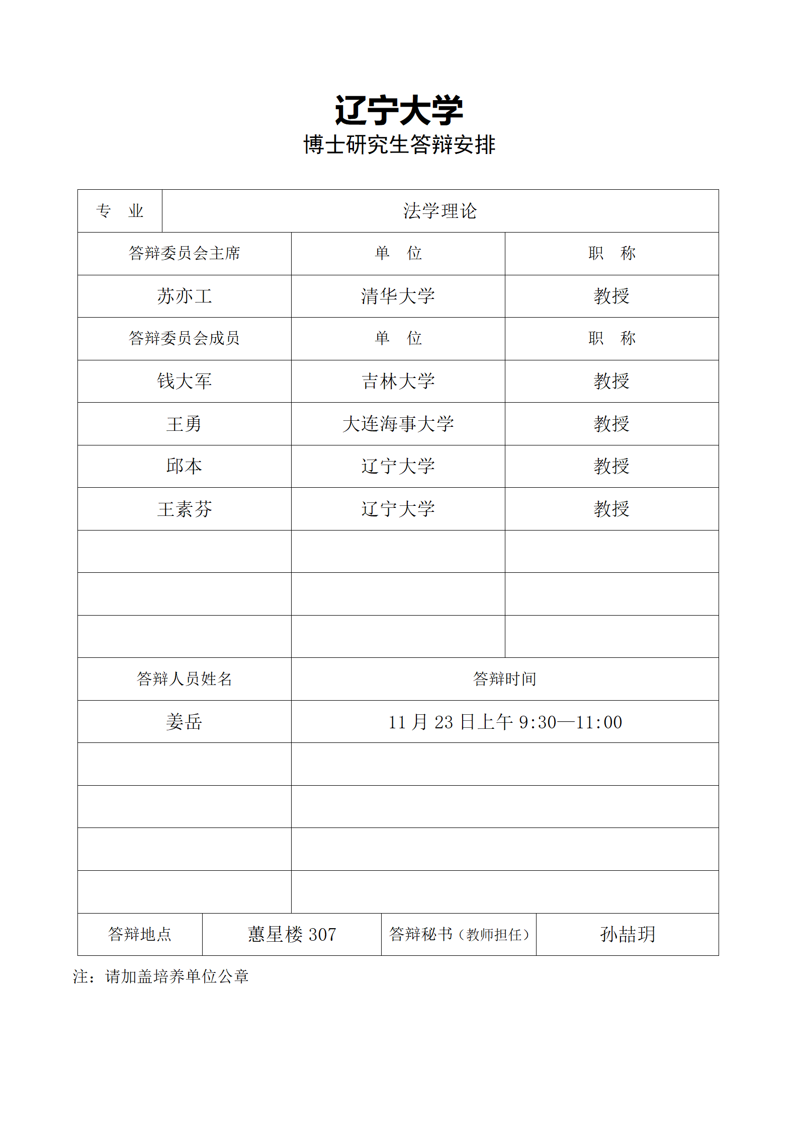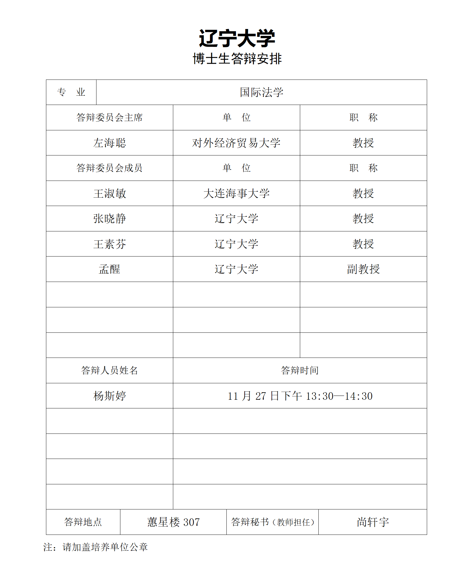 法学院2025-2026学年第一学期博士学位论文答辩公示